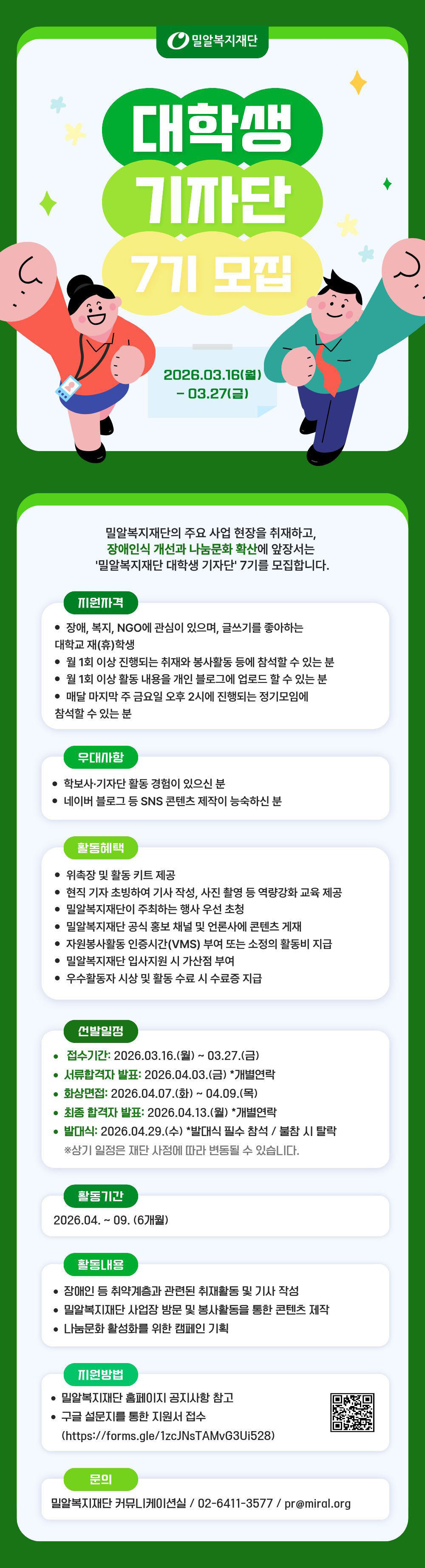 '밀알복지재단 대학생 기자단' 7기를 모집합니다.
