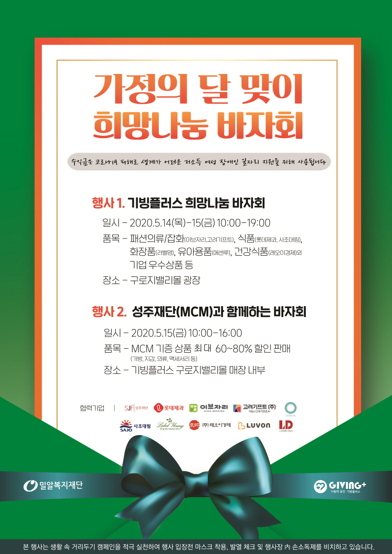 * 14,15일 진행 예정이었던 네오플램 나눔바자회 및 성주재단 나눔바자회는 내부 사정으로 진행이 취소되었음을 알려드립니다.
