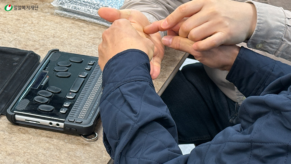 수어의 움직임을 촉각으로 전달받는 방식으로,