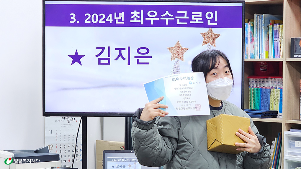 2024년, 25년 최우수근로인 상을 수상한 직원 김지은