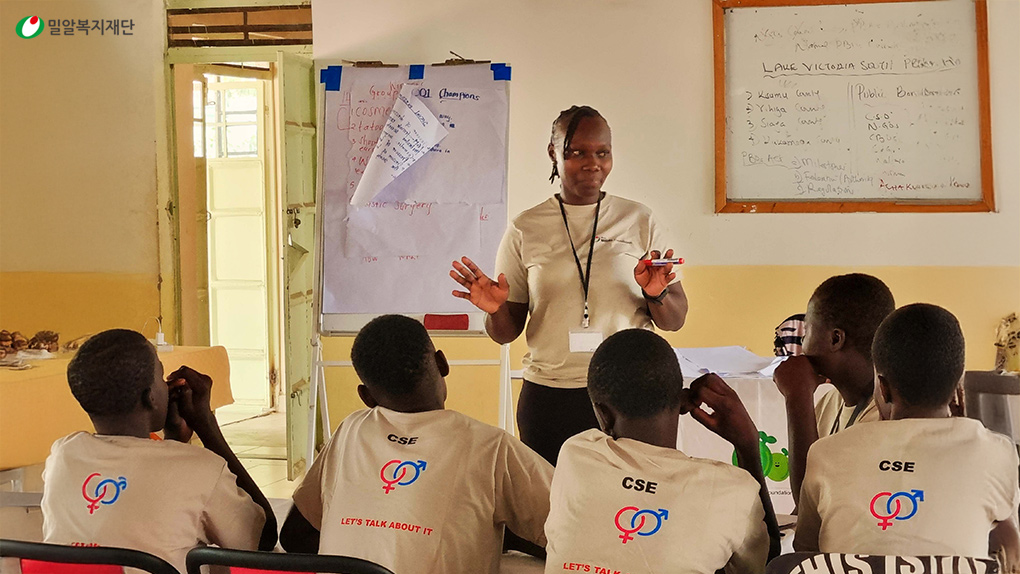 시험 성적, 갑작스러운 감정 기복, 친구 관계, 연애에 대한 호기심까지 - 청소년기에 접어든 아이들의 고민은 한국 청소년들과 크게 다르지 않습니다. 이에 밀알복지재단 케냐 지부에서는 멘토링 활동을 통해 아이들이 스스로 답을 찾아갈 수 있도록 돕고 있습니다. ![]() 장래희망을 적은 티셔츠를 들고 있는 케냐 중고등학생 결연아동들 사춘기를 함께 건너는 멘토링 이야기 멘토링 프로그램은 사춘기를 맞이한 청소년들에게 꼭 필요한 내용들로 구성되었습니다. 외부 견학, 진로 계획 및 자기주도 학습법 교육, 정신건강 및 감성지능 교육, 성교육 등이 포함된 프로그램은 지식을 전달하는 것을 넘어, 아이들의 정서와 관계, 자존감 회복에 초점을 맞췄습니다.