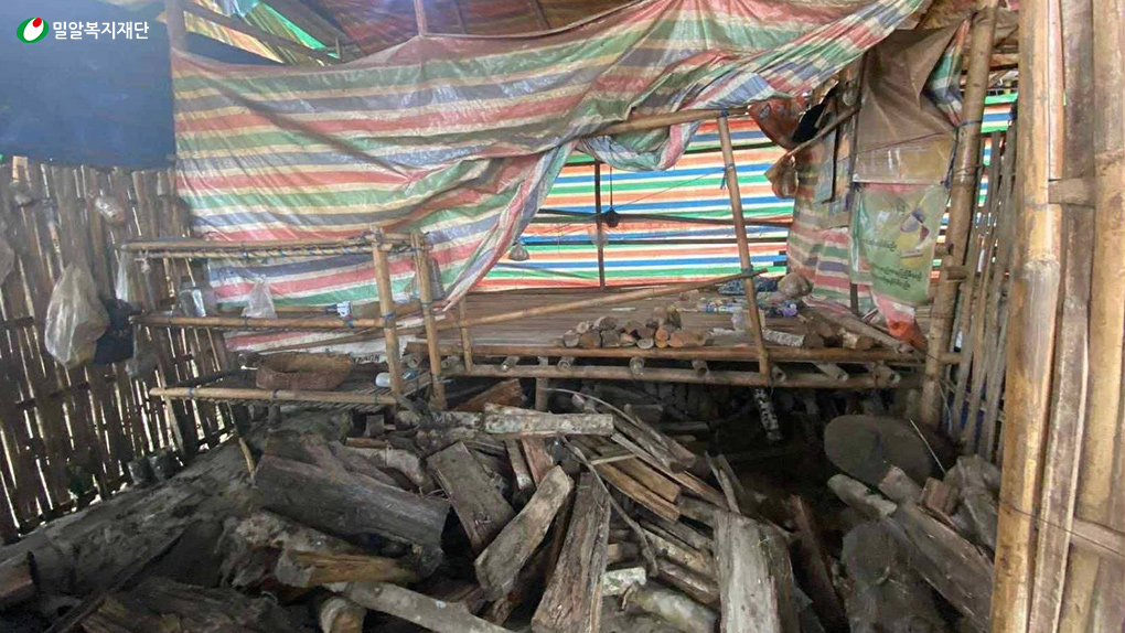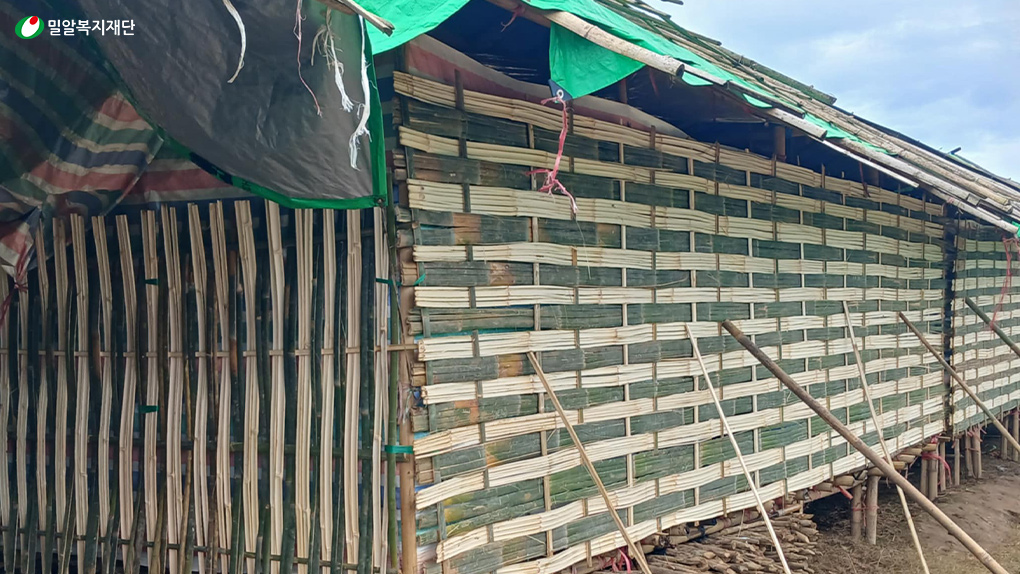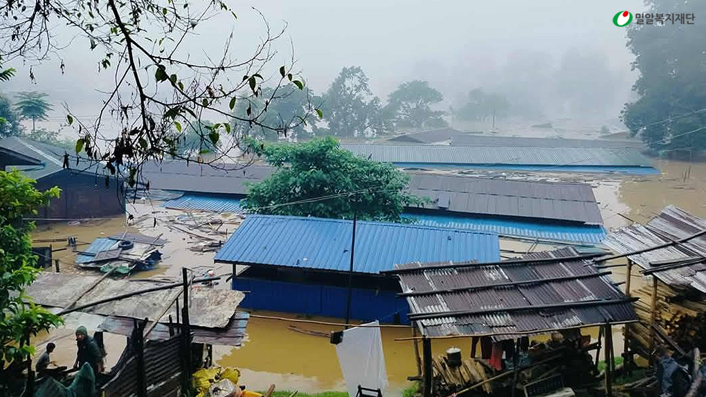 지난 7월, 미얀마 전역을 강타한 집중호우와 홍수로 인해 바고, 카친, 라카인, 샨 등 70개 지역이 침수되며 360명 이상이 사망하고 수백 명이 실종되었습니다. 특히 국내실향민(IDP, Internally Displaced Persons)이 거주하는 캠프는 침수 피해로 주거지와 위생시설이 파손되어 더욱 열악한 상황에 놓였습니다. 총 1,142가구(4,745명)가 피해를 입었으며, 쉘터와 화장실을 포함한 식수·위생시설이 심각하게 손상되었습니다. 캠프 침수 현장 밀알복지재단은 KOICA 민관협력 인도적지원사업의 일환으로, 카친주 미치나(Myitkyina)와 와잉모(Waingmaw) 지역의 국내실향민(IDP)을 대상으로 홍수 피해 주민을 위한 긴급 재난 대응 활동을 전개했습니다. 함께 만드는 회복 주거공간 (쉘터) 복구: 무너진 집에 ‘안전’을 세우기 비가 새는 방에서 불안한 밤을 보내야 했던 주민들에게 가장 시급한 것은 ‘안전한 공간’이었습니다. 홍수로 파손된 지붕과 벽체를 보수하고 누수 방지 공사를 실시하여, 주민들이 안전하게 생활할 수 있는 주거 환경을 조성했습니다. 총 82가구(392명)가 지원을 받았으며, 주민들은 “비가 오는 날에도 걱정 없이 지낼 수 있게 되었다”고 전했습니다.