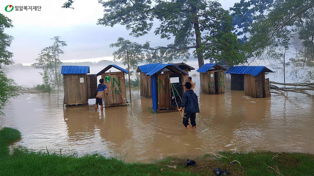 홍수 피해를 입은 미얀마 국내실향민 캠프 내 화장실