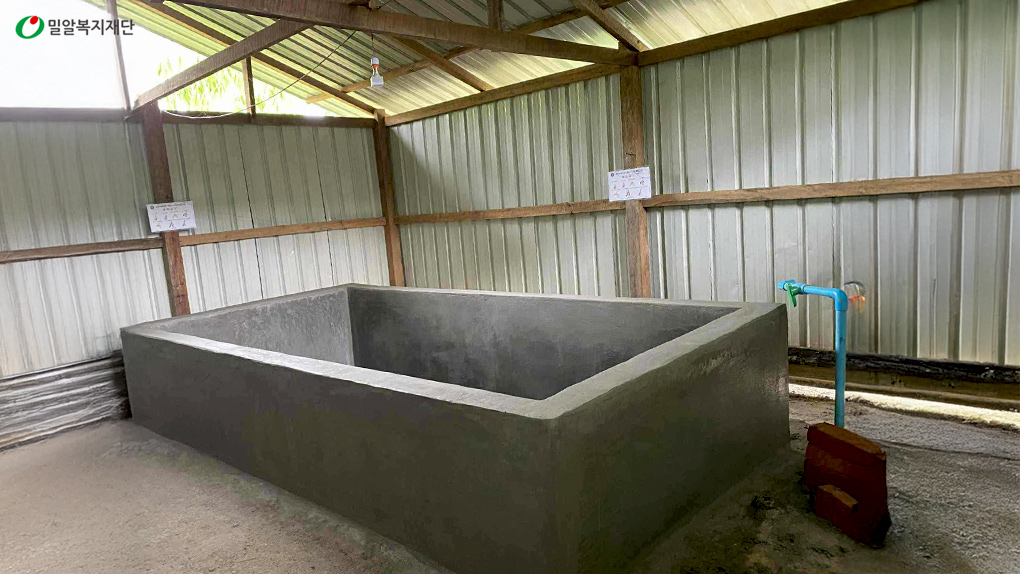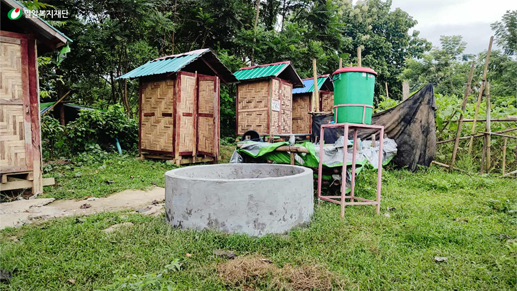 홍수로 침수 피해를 입은 임시 보호소(쉘터) 보수 작업이 완료된 임시 보호소(쉘터) 식수시설 복구 안전한 식수원 확보를 위한 우물 복원 홍수로 오염된 물이 깊은 우물 속으로 스며들며 식수 확보가 큰 문제로 떠올랐습니다. 이에 밀알복지재단은 배수(dewatering) 작업을 긴급히 실시하고, 식수 저장탱크 프레임 설치와 오버헤드 탱크 및 배관 시스템을 구축했습니다. 이를 통해 주민들이 안전하고 깨끗한 식수와 생활용수를 확보할 수 있도록 지원했습니다. 복구된 미얀마 실향민 캠프 내 우물 새롭게 설치된 물탱크 위생시설 복구 캠프 내 위생환경 개선 홍수로 무너진 화장실은 흙탕물에 뒤덮여 악취와 질병 확산의 위험을 안고 있었습니다. 특히 여성, 아동, 노인, 장애인은 수인성 질병에 더 취약하기에, 이를 해결하기 위해 6개 캠프에서 주민들과 함께 총 125개의 화장실을 복구했습니다. 구조물과 지붕을 보수하고 세면 공간을 정비했으며, 손 씻기 시설과 위생용품(비누, 양동이 등)도 함께 지원해 취약한 환경에 놓인 주민들의 위생환경 개선에 기여했습니다.