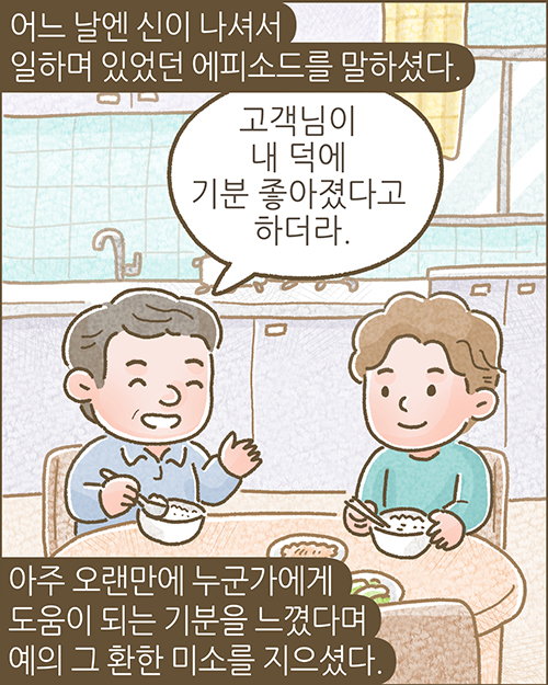 ![]() ![]() ![]() ![]() ![]() ![]() ![]() ![]() 제11회 스토리텔링 공모전 '일상부문'에서 장려상을 수상한 이재용 님의 작품을 바탕으로 제작되었습니다. ※ 밀알툰은 무단 사용 및 변형, 영리 목적으로 이용할 수 없습니다. 또한 이용을 원할 경우 반드시 사전에 밀알복지재단에 가능여부를 문의해야 하며, 사용 시 출처(밀알복지재단)를 표기해야 합니다. (문의: pr@miral.org) |