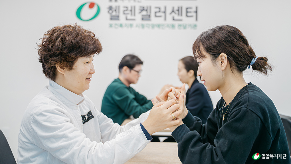 ![]() 굿윌스토어 '나눔ON잡' 행사현장 3. 헬렌켈러센터: 보이지 않고 들리지 않는 세상에서 길을 찾다 "시청각장애인에게는 세상과 연결될 통로가 필요합니다." 헬렌켈러센터는 정보 접근과 의사소통의 어려움으로 사회적 고립이 매우 심각한 시청각장애인을 지원합니다.이 곳에서 시청각장애인들은 점자와 촉수화 교육, 의사소통 지원, 통역 서비스 등을 제공받으며 세상과 소통하고 있습니다. 뿐만 아니라 헬렌켈러센터는 전문활동지원사 양성과 파견, 시청장애인 자조모임, 문화체험과 캠프 등을 통해 단순한 교육과 훈련을 넘어 시청각장애인이 사회 속에서 자립할 수 있도록 지원합니다. 지난해에는 보건복지부로부터 국내 최초의 시청각장애인 지원 전담기관으로 선정되면서 국가 차원의 지원 허브로 도약했습니다. 이처럼 헬렌켈러센터는 시청각장애인들이 보이지 않고, 들리지 않는 고립된 삶 속에서 세상과 이어주는 통로를 만드는 데 집중하고 있습니다. ; 시청각장애인을 위한 동료상담가 양성교육 현장 장애인과 더불어 살아가는, 완전한 사회통합을 위하여! 이 밖에도 밀알복지재단은 다양한 채널을 통해 장애에 대한 사회적 인식을 바꾸기 위한 활동을 이어가고 있습니다.; 장애인과 비장애인이 함께 무대를 만들고 관객으로 참여하는 ‘밀알콘서트’, 장애인식개선 콘텐츠를 전하는 유튜브 채널 ‘알TV’, 문화 체험을 기반으로 인식개선 교육을 펼치는 ‘브릿지온(Bridge On)’ 등이 대표적입니다. ![]() 알티비 장애인도우미견 ‘앤디’ 편 당신의 참여로 함께 만드는 변화 세계 장애인의 날은 단순히 장애인을 기억하는 날이 아닙니다. 우리 사회가 얼마나 포용적인지 돌아보고, 함께 변화를 만들어가는 날입니다. 밀알복지재단의 모든 활동은 후원자들의 관심과 참여로 이루어집니다. 작은 관심이 한 아이에게는 치료를 받을 기회가 되고, 한 사람에게는 일자리가 되며, 누군가에게는 세상과 만날 수 있는 통로가 됩니다. 12월 3일, 세계 장애인의 날을 장애인과 비장애인이 함께 살아가는 세상을 위해 우리가 할 수 있는 일들을 생각해보면 어떨까요? 우리의 관심과 참여가 모여 더 평등한 사회를 만들어 갑니다.