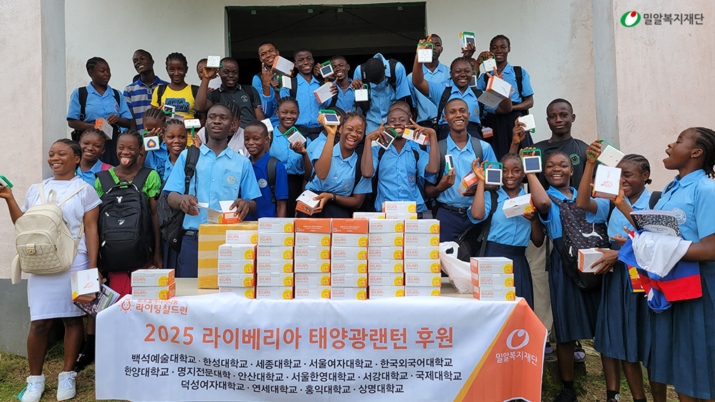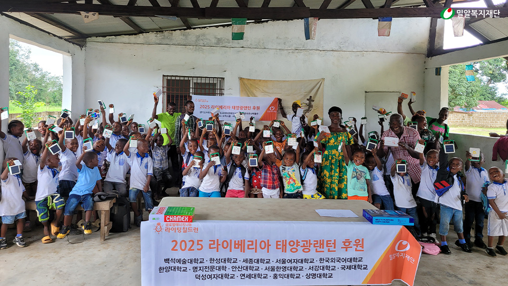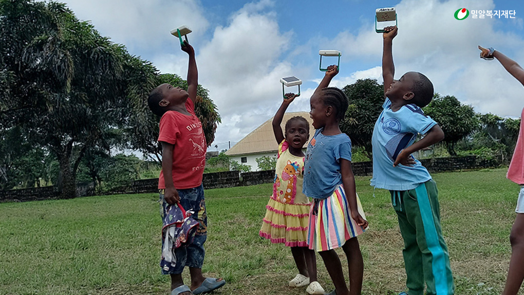 일몰 이후, 가로등 없는 거리를 걷고 있는 주민들 (출처:Firefly) ‘솔라미’ 랜턴, 어둠을 깨우다 밀알복지재단은 라이베리아 이웃들의 밤을 밝히기 위해, 태양광랜턴 ‘솔라미(Solarmi)’를 전달하기로 했습니다. ‘솔라미’는 태양을 의미하는 라틴어 sol과, 친구를 뜻하는 ami가 결합된 이름으로, 에너지 빈곤국가 아동들에게 태양의 빛을 전하는 친구가 되어주고자 하는 의미를 담고 있습니다. ![]() 라이베리아에 전달된 태양광랜턴 ‘솔라미’ 솔라미는 햇빛으로 충전하는 휴대용 태양광랜턴으로, 6시간 충전 시 최대 12시간까지 사용할 수 있으며 최대 10년간 사용이 가능합니다. 밀알복지재단은 후원자분들이 직접 정성스럽게 만들어주신 2,000개의 랜턴을 라이베리아 마르기비(Margibi), 몬트세라도(Montserrado), 봉(Bong) 카운티의 14개 마을과 6개 학교에 전달할 수 있었습니다. ![]() 14개의 마을, 6개 학교에 전달된 태양광랜턴 불빛 아래 다시 시작된 일상과 웃음 태양광랜턴이 보급된 이후 마을의 풍경에는 눈에 띄는 변화가 생겼습니다. 가정 내에서는 일몰 이후에도 자유롭게 움직일 수 있게 되었고, 어둠 속에서 막막했던 영유아 돌봄도 한결 수월해졌습니다. 아이들은 각자 사용할 수 있는 랜턴을 갖게 되면서 저녁 시간에 숙제나 복습을 할 수 있게 되었고, 농사일을 마치고 돌아온 부모님에게 낮에 배운 내용을 직접 보여주는 등 가족 간의 교류도 활발해졌습니다.