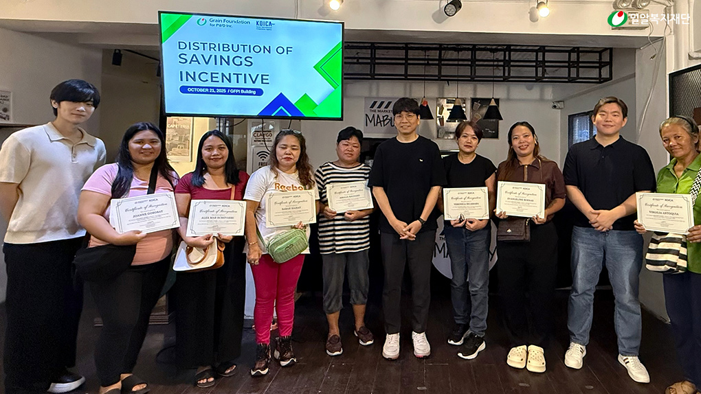 [필리핀 마닐라에서 보낸 5박 7일] 저는 10월 19일부터 25일까지, 필리핀 마닐라로 5박 7일간의 출장을 다녀왔습니다. 이번 출장은 단순히 현장을 둘러보는 것이 아니라, KOICA 사업의 1단계 종료에 따른 성과를 점검하고 차기 사업의 실행 가능성을 타진하기 위한 실질적인 ‘현장 모니터링’을 목적으로 진행되었습니다. 사업장을 방문해 문서상의 수치들을 대조 확인하고, 참여자 인터뷰를 통해 사업의 실질적인 효과를 검증하는 등 국제개발협력 현장의 치열함을 직접 경험해보고, 사업이 현장에서 어떻게 삶의 변화를 만들어내고 있는지 생생하게 확인할 수 있던 귀중한 시간이었습니다. [현장 모니터링 ①: 필리핀 장애가정 생계다각화 지원 사업] KOICA 민관협력사업으로 진행되는 「필리핀 도시 빈곤 장애인 가정 생계전략 다각화 지원 사업」은 올해 1단계를 성황리에 마무리했습니다. 다가오는 2026년부터는 기존 개인 비즈니스를 넘어 '그룹 비즈니스'로 확장하여, 장애인 가정의 사회참여 증진과 빈곤 위협 경감을 목표로 하는 2단계 사업을 시작할 예정입니다. 이번 출장에서 저는 사업 참여자들의 저축 및 매출 현황을 면밀히 파악하고, 차기 사업 운영에 대한 현장의 목소리를 듣기 위해 인터뷰를 진행했습니다. 마닐라 지부의 첫인상은 ‘활기참’ 그 자체였습니다. 제가 방문한 날은 마침 ‘저축지원금 지급식’과 바자회가 함께 열리는 날이었는데요. ‘저축지원금 지급식’은 꾸준한 저축으로 목표액을 달성한 참여자들에게 인센티브를 전달하는 자리였습니다. 지부 직원들이 참여자분들과 끊임없이 소통하며 행사를 준비하는 열정이 현장 곳곳에서 느껴졌습니다. 특히 사업 참여를 통해 얻은 소중한 창업 소득을 저축으로 연결하고, 마침내 목표를 달성해 상을 받는 참여자들의 모습은 무척 인상적이었습니다. 스스로 자립의 발판을 마련해가는 이들의 성취를 현장에서 함께 축하해 드리며, 본부 실무자로서 깊은 보람과 사업에 대한 확신을 얻을 수 있었습니다.