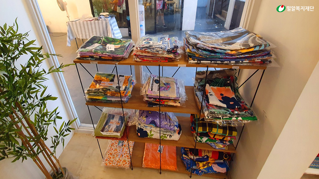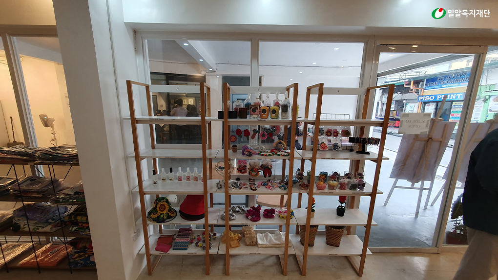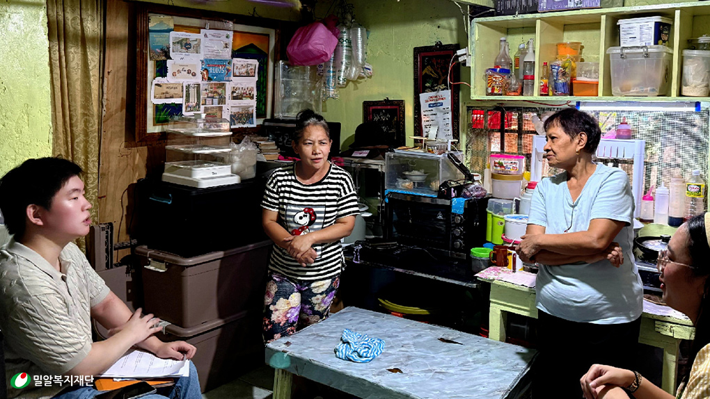 마부하이 공판장에 진열된 물품 *마부하이 공판장(The Market MABUHAI): 필리핀어로 ‘환영합니다’라는 뜻과 ‘Mother on Advancement of BUsiness for the Household And Young Generation’의 약어로, 장애와 비장애 구분 없이 모두를 환영한다는 포용적 비즈니스의 의미와 함께 가정과 청년 세대의 경제적 자립을 위해 노력하는 어머니들이라는 의미를 담고 있습니다. 실질적인 변화는 참여자 가정 방문 인터뷰에서 더욱 선명하게 다가왔습니다. 지원받은 창업 교육과 지원금이 실제 생계에 큰 도움이 되고 있다는 감사 인사와 함께, 새로운 제품 제작 등 적극적인 자립 아이디어를 제안해 주시는 모습에서 구체적인 삶의 변화를 확인할 수 있었습니다. 그동안 본사에서 문서로만 소통하던 분들을 직접 뵙고 이야기를 나누니, 본부와 현지의 모든 노력이 사업 참여자의 삶에 직접적으로 이어지고 있다는 것이 생생하게 체감되며 실무자로서 큰 동기부여를 얻을 수 있었습니다.