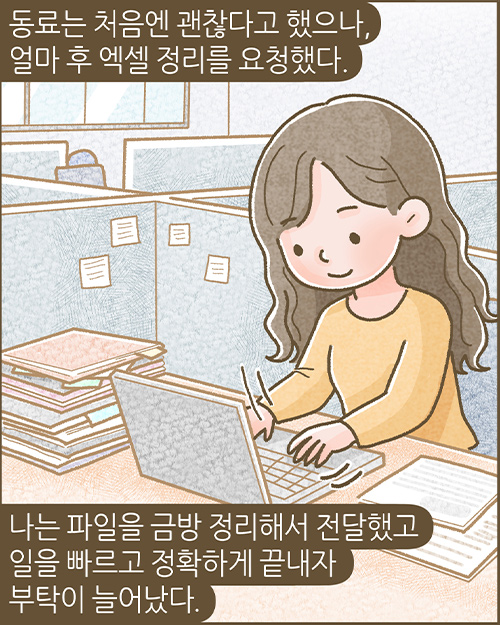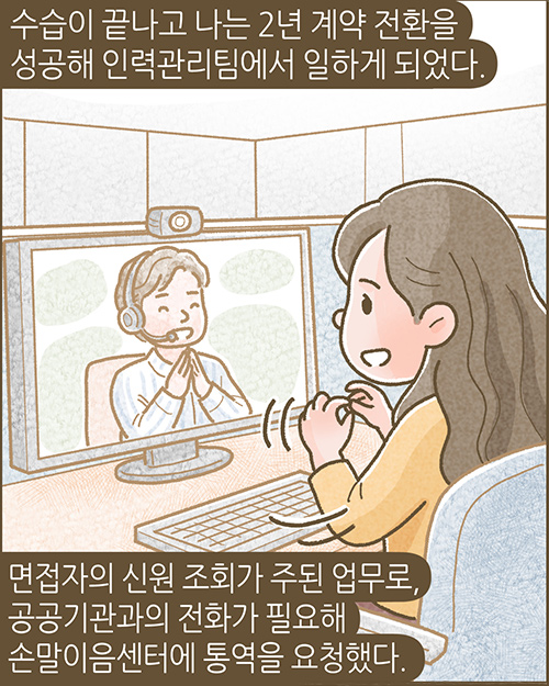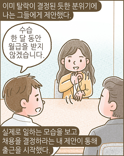 제11회 스토리텔링 공모전 '일상부문'에서 최우수상을 수상한 조희경 님의 작품을 바탕으로 제작되었습니다. ※ 밀알툰은 무단 사용 및 변형, 영리 목적으로 이용할 수 없습니다. 또한 이용을 원할 경우 반드시 사전에 밀알복지재단에 가능여부를 문의해야 하며, 사용 시 출처(밀알복지재단)를 표기해야 합니다. (문의: pr@miral.org) |