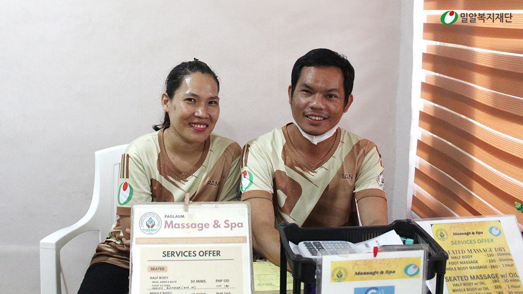 그중 다니엘, 마리떼스를 포함한 17명의 직업재활센터 동기가 함께 만들어 낸 '파그라움 스파'는 더욱 특별한 희망을 만들어내고 있습니다. 사회에 남아있는 장애에 대한 부정적인 인식, 그리고 불안정한 생계를 뛰어넘어 현재 월 10만 페소(약 250만 원)의 수입을 안정적으로 올리며 성공적으로 스파가 운영되고 있습니다.
